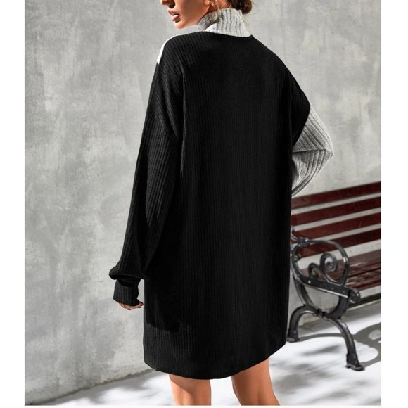 Turtle Neck Drop Shoulder Two Tone Sweater Dress