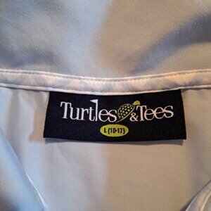 Turtles & Tees boys size L 10/12 blue & white polo golf shirt