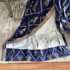 •Pinch pleat drape with gold ribbon on side/bottom of panel