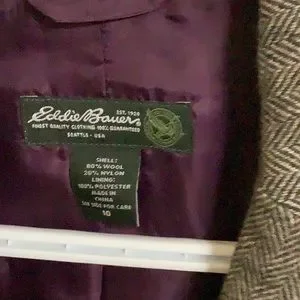 Great little jacket/blazer. 80% wool 20% Rayon.lots of great detail on cuffs and back. Love it but too small. Worn only a couple of times but I’ve had if for a few years.
