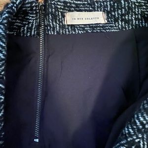 Zipper is in the middle on the back. These shorts have two pockets on the front but are seem less and do not stick out.