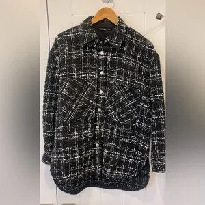 NWOT - Black and white with a slight shiny black thread throughout. Snap buttons.