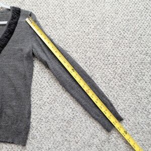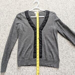 Tweeds Women's Merino Wool V-Neck Button Up Sweater/Cardigan w/Ruched Trim