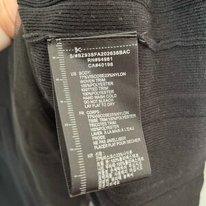 Elegant black cardigan with ruffled collar. Features a zip-up front and sheer hem detail. Perfect for layering. Like new size XS