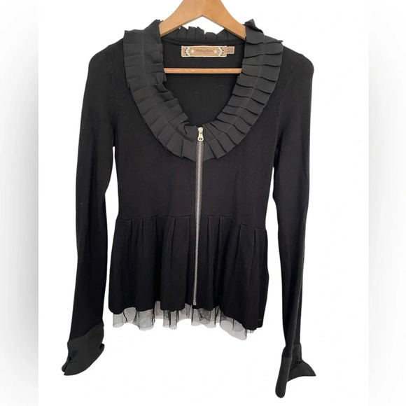 Twelve by twelve Black Ruffled Zip-Up Cardigan size XS