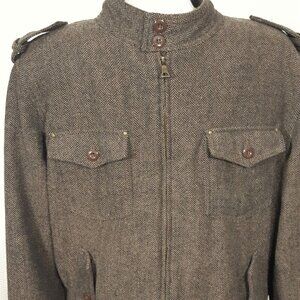 Twenty One Men Wool Blend Flight Jacket Coat XL Chevron Tweed Pockets Dark Brown