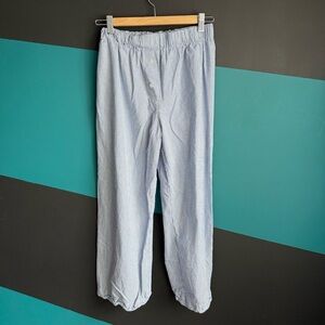 Discover the perfect blend of comfort and style with these blue wide-leg pants from Twik. Designed with a relaxed fit, they offer a flowing silhouette that extends to the ankles, ideal for a casual yet polished look. The lightweight fabric and elastic waistband ensure all-day comfort.