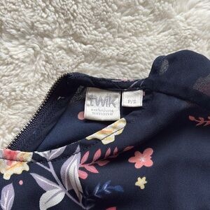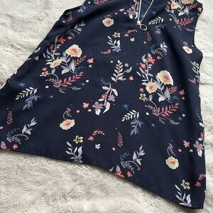 Twik Floral Sleeveless Blouse | Navy Zip Back Tank Top Size Small