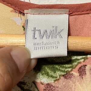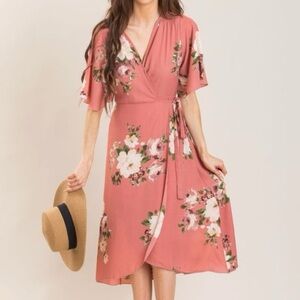 Twik Floral Wrap Dress Pink Rust Midi Size L