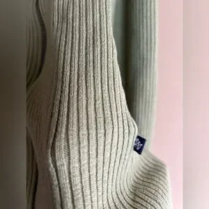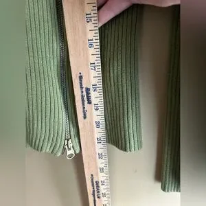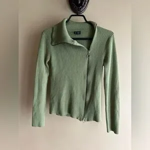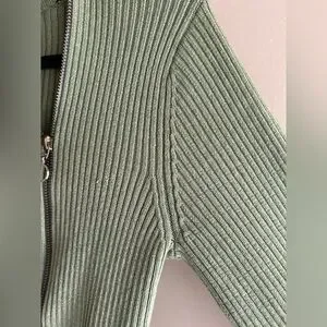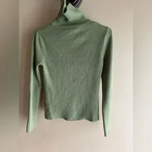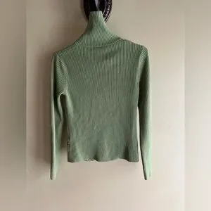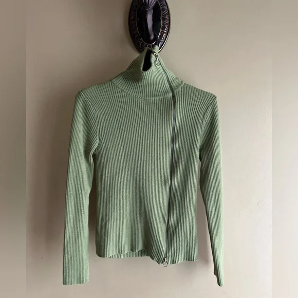 Stylish ribbed turtleneck top with asymmetrical zipper Long sleeves. Green is a little darker in person.