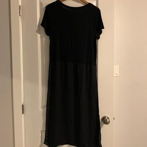 Soft, cotton top portion and flowing chiffon bottom. Slits on both sides.