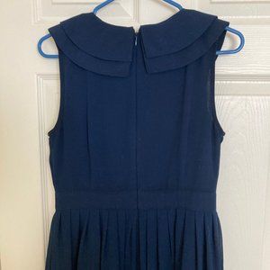 Simons Twik navy blue dress with peter pan collar and pleated skirt. Size Medium.