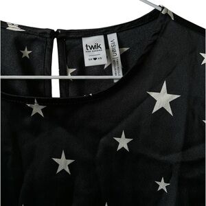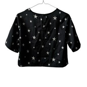 Black cropped blouse. White star print. Short sleeves. Size XS. From Simons.