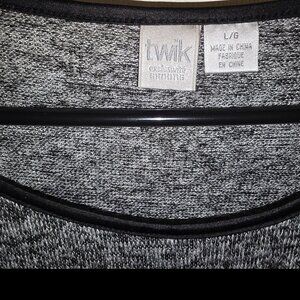 This dress is so cute! Perfect for fall, winter- with 3/4 sleeves, pockets in front, perfect with tights, or a dress with nice black boots 👢. There are a couple pulls in the knit fabric.