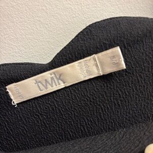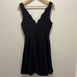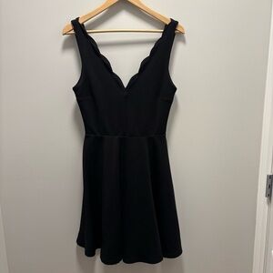 Twik (Simon's) black sleeveless dress with scalloped detailing.