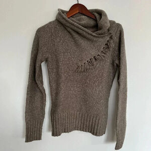 Twik Tan Asymmetric Fringe Collar Sweater Cozy Textured Knit Size S