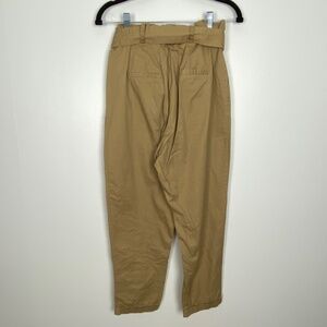Twik Trousers Womens Small Tan Cotton Paperbag Waist Belted Folded Cuffs Front Pockets