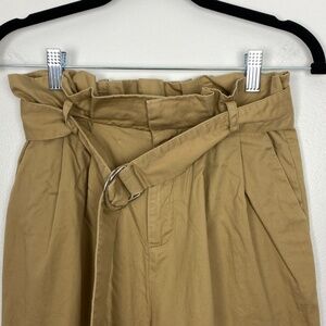 Twik Trousers Womens Small Tan Cotton Paperbag Waist Belted Folded Cuffs Pockets