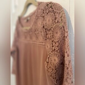 Boho chic knee length dress Super easy to wear Crochet and woven fabric without stretch Size small Perfect condition