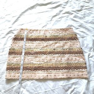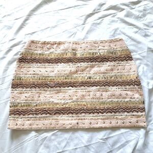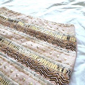 Twik by simons | Pastel pink & gold beaded mini skirt , side zipper. women's size medium