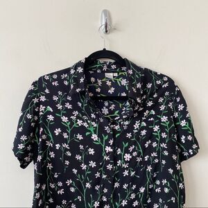 Twik-floral Short Top Button Down Short Sleeve Blouse (Medium)