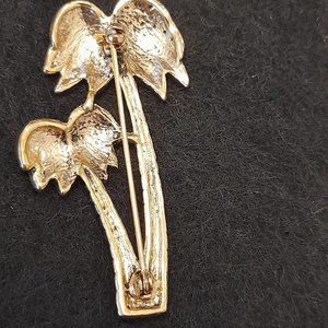 Twin 2 Crystal Palm Tree Pin Brooch Green & Topaz Color Crystals Pre-Owned