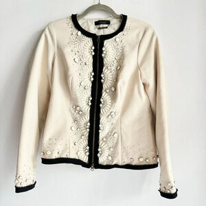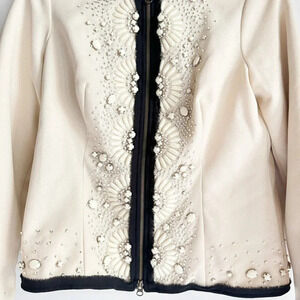 Twin Set Simona Barbieri Ivory Beaded Zip Closure Jacket L