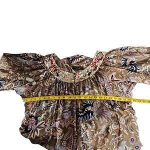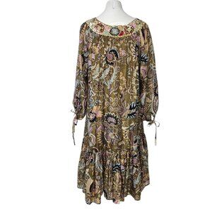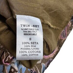 Twin-Set Simona Barbieri 100% Silk, Floral Tie Sleeve Dress, Sequin Embellish, S