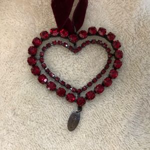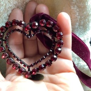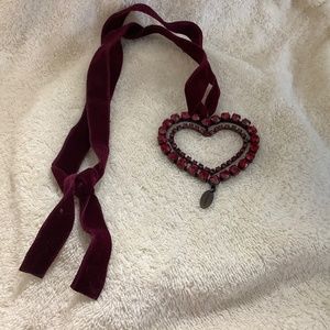 Twinset Gorgeous over sized Necklace with Burgundy velvet and red stones in a double heart setting. This necklace was made in Italy