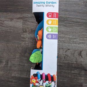 Fun and stimulation for your baby -Colour, texture and sound for unique sensory experiences -Easily attaches to stroller or crib -Features teethers, crinkle paper, rattle and fabrics -Squeaks to stimulates motor skills