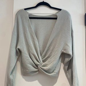 Cozy and cute, with a flattering neckline and a fun twist detail in the back.