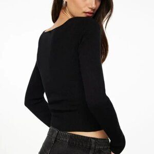 This is a twisted cutout rib knit sweater - Designed to be fitted to your form.