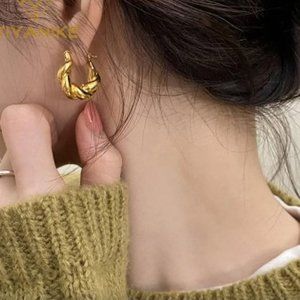 #Chunky Gold Hoop Earrings, #Thick Twisted Hoops, #Gold Plated Huggie Earrings