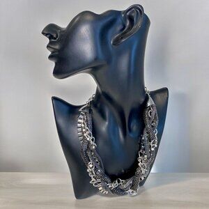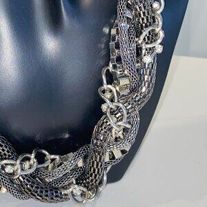 Twisted Multi-Strands Silver Tone Chain Necklace Rhinestones Metal Rope Mesh Gothic