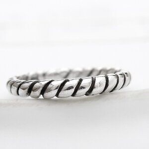 Twisted Silver Band Ring, Stackable Polished Ring, Real 925 Sterling Silver Sz 7