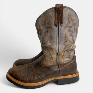 Rugged cowboy boots with unique stitching. Crafted from quality leather. Ideal for everyday wear.