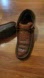 Boots are brown with a raised tooled leather floral design with tiny blue agate stone centres.