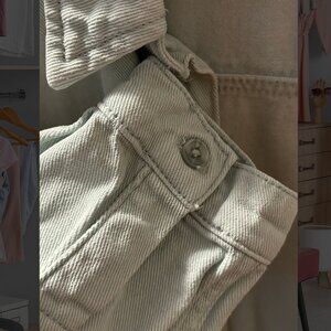 This mint green heavyweight denim overshirt from Twik by Simons Exclusive is super on-trend right now. It's a Ladies size small and in flawless condition. Perfect for layering, this versatile piece adds a pop of color and style to any outfit. Ideal for casual wear, it's a must-have addition to your wardrobe.