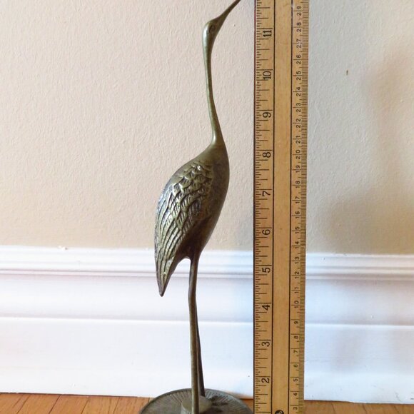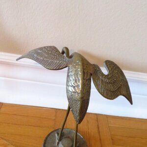 Two 1960s Solid Brass Crane Birds Ornaments Decorations / Vintage Mid-Century De