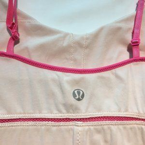 Includes both tops! Gently used, but lovingly cared-for, this lot contains one blush pink power-y tank and one lightweight jersey tank with dark pink trim.