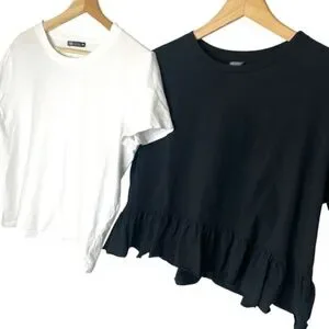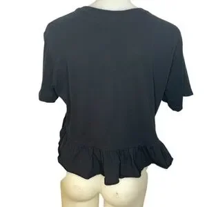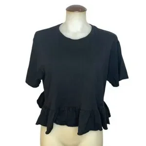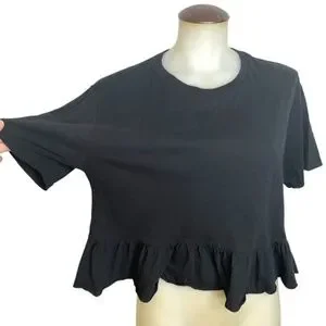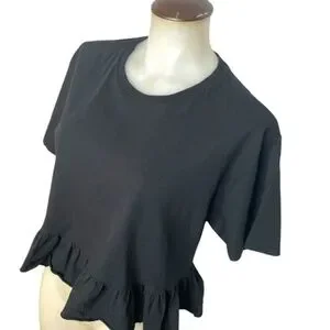 Black boxy tee with bottom ruffle: