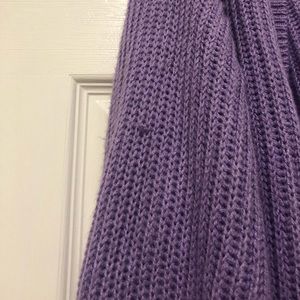 Lavender cardigan (1x), in good condition but it does have a little string pull in one of the sleeves. See the picture of how it looks like.