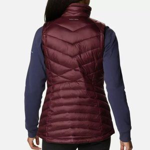 Women's Joy Peak Insulated Peach Blossom Vest with collar lined with plush fleece and a statement-making thermal-reflective gold lining keep you stylishly cozy. Size S (worn 3x). Women's Heavenly Vest thermal-reflective lining retains body heat, while the water-resistant fabric blocks light rain. Colour Malbec Size S (worn 10x)