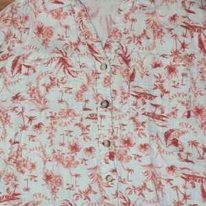 Stylish leaf, palm tree, floral print shirt. Button down design with collar. Ideal for casual wear and pair with jeans or shorts.