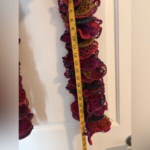 Add a pop of color to your outfit with this elegant multicolor ruffled scarf. Perfect for any occasion.