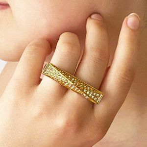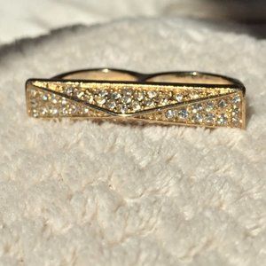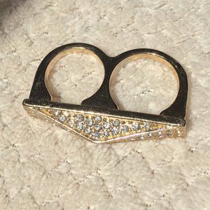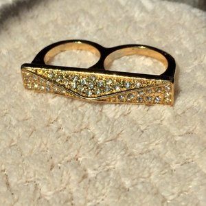 A cool looking 2 fingers ring in gold color and clear stones - Costume Jewelry.