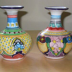 Two Hand Painted 5" Pottery Mexico Mexican Vase Hernandez Talavera Floral
