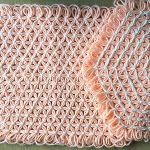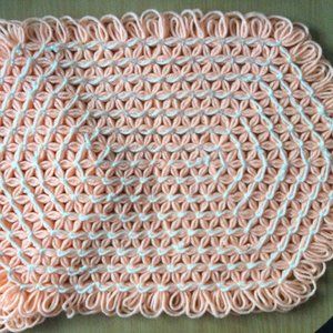 Two Handmade table mat place mat hand knitted crocheted pink yarn hexagon shape