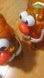 Fun Mr. Potato Head toy set featuring green caps and red noses. Perfect for imaginative play.