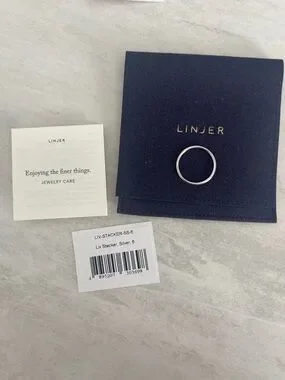 Selling two Linjer silver stacking rings - one twist and one simple band. Both are size 6, and come with bag and care instructions.